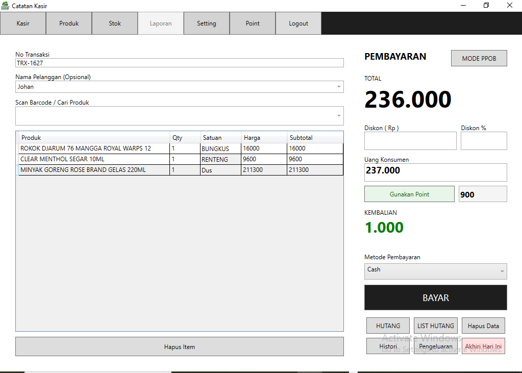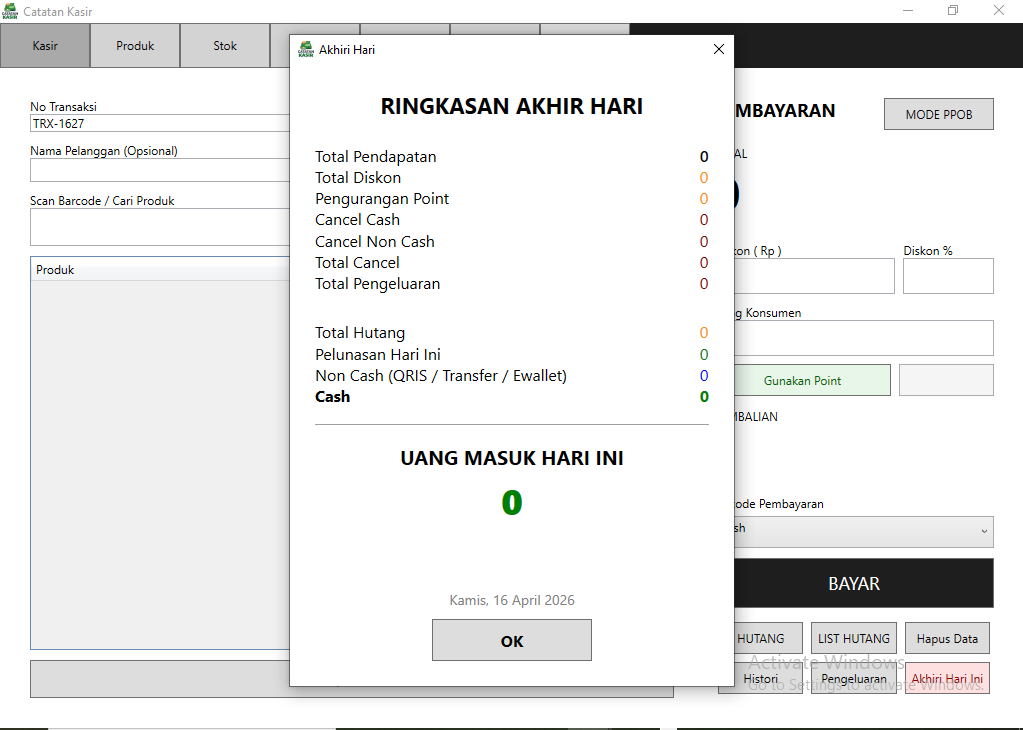 Laporan kasir harian.
